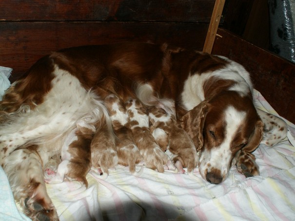 Amira My name is AMIRA Duleks. My new, human family I met on 20 November 1992. I was then 5 months old. I was afraid a little, but I have quickly fallen in love with my Owners – very nice couple (a Lady and a Man). They showed me a lot of new and curious things, great meadows, where hares, partridges and pheasants used to catch. When I was 4 years old I gave birth to six magnificent little puppies. One of my daughters – Alfa - stayed with us, so we were just two of us since then. We were traveling together to take part in the exhibitions, I liked to be shown on the rings very much. There were many dogs, always the same fantastic atmosphere of excitation and gladness but I know that not every dog likes it. Summer holidays I always spent on water on our sailing boat. We were sailing down the Narew River, there was a lot of waterfowl on the riversides - like swans, ducks. Sometimes I succeeded in sniffing at their footprints.In Winter I liked running along in the snow very much and dig out the accidentally hidden objects. These things I had found were always immediately taken away from me because people considered them as rubbish. I remember one of my last excursions, we were traveling by car very far. On the Rugia Island – first time in my life – I met so many countrymen (fellow-citizens). Then it turned out that it was a very special meeting of Welsh Springer Spaniels living in Germany. Such a large number of my fellow countrymen I have never met again. What a pity that in Poland there is only few of us!